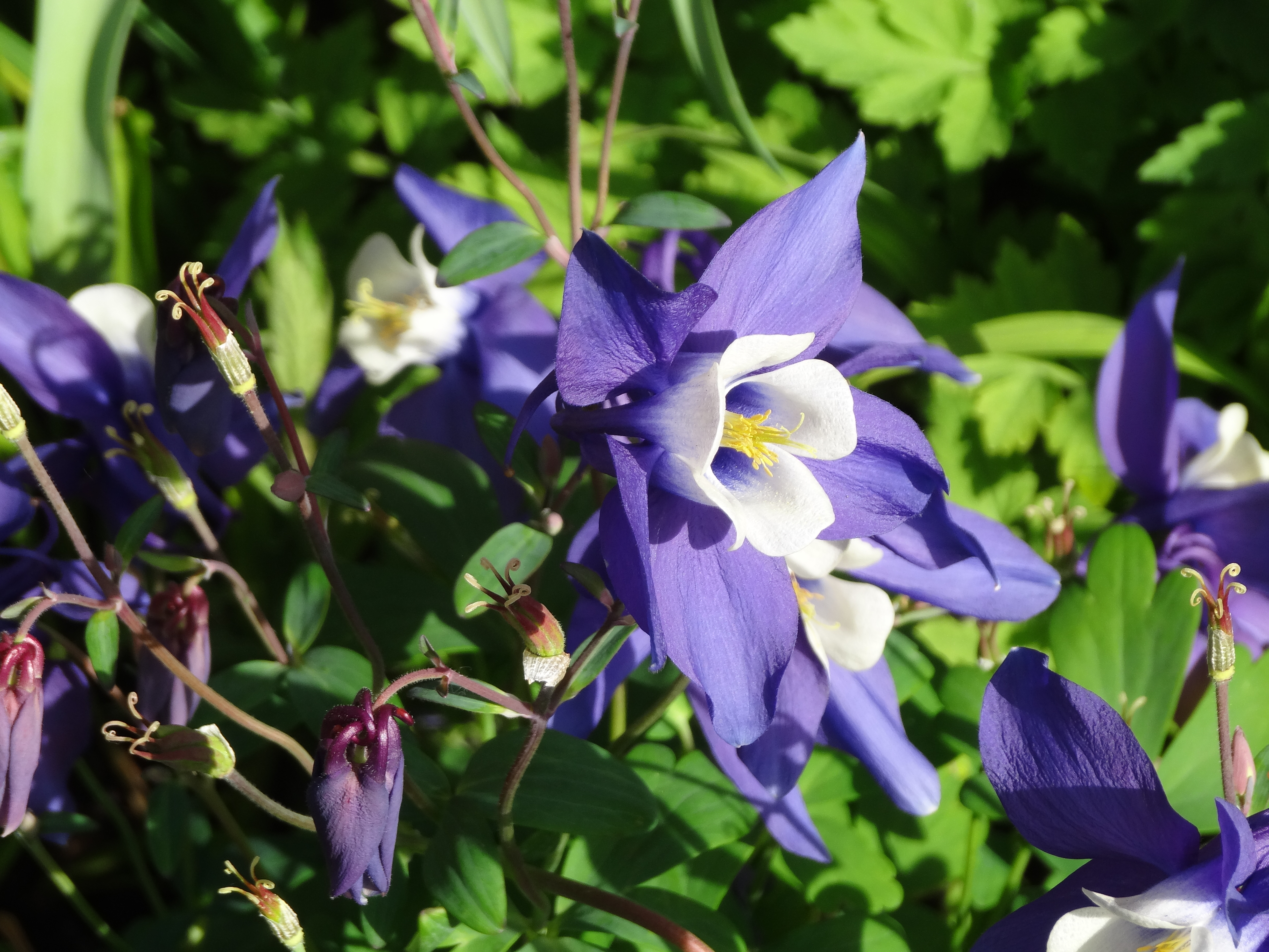 Then in Autumn, in go the bulbs: snowdrops, purple and white crocuses, white hyacinths, blue muscari, white narcissi, a variety of tulips, and the ever reliable alliums. Good drainage is important so add some grit if your soil is heavy clay. These bulbs will push through the planting to create interest from February to May.
