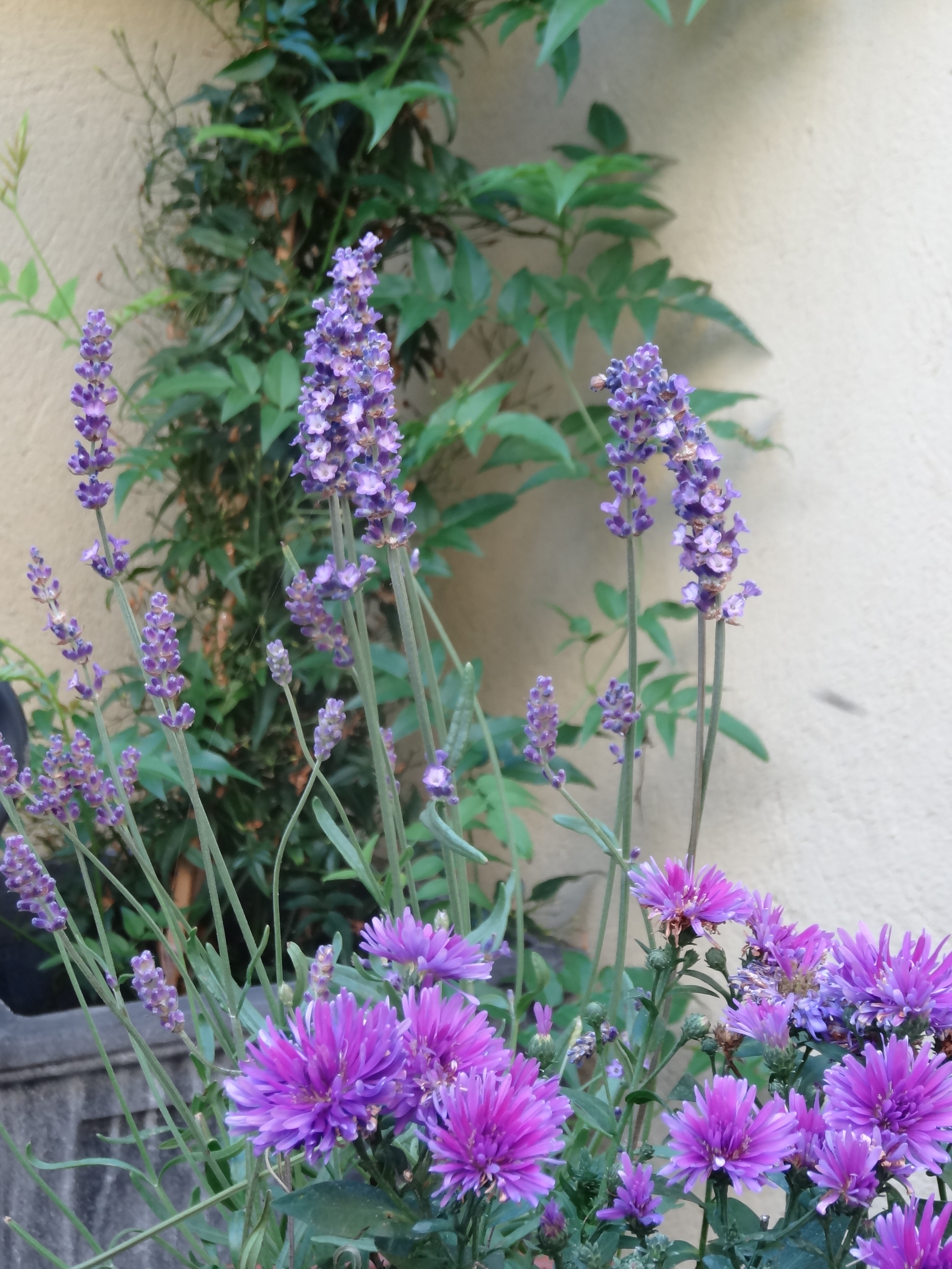 Here Jasmine curls around a stone wall plaque.