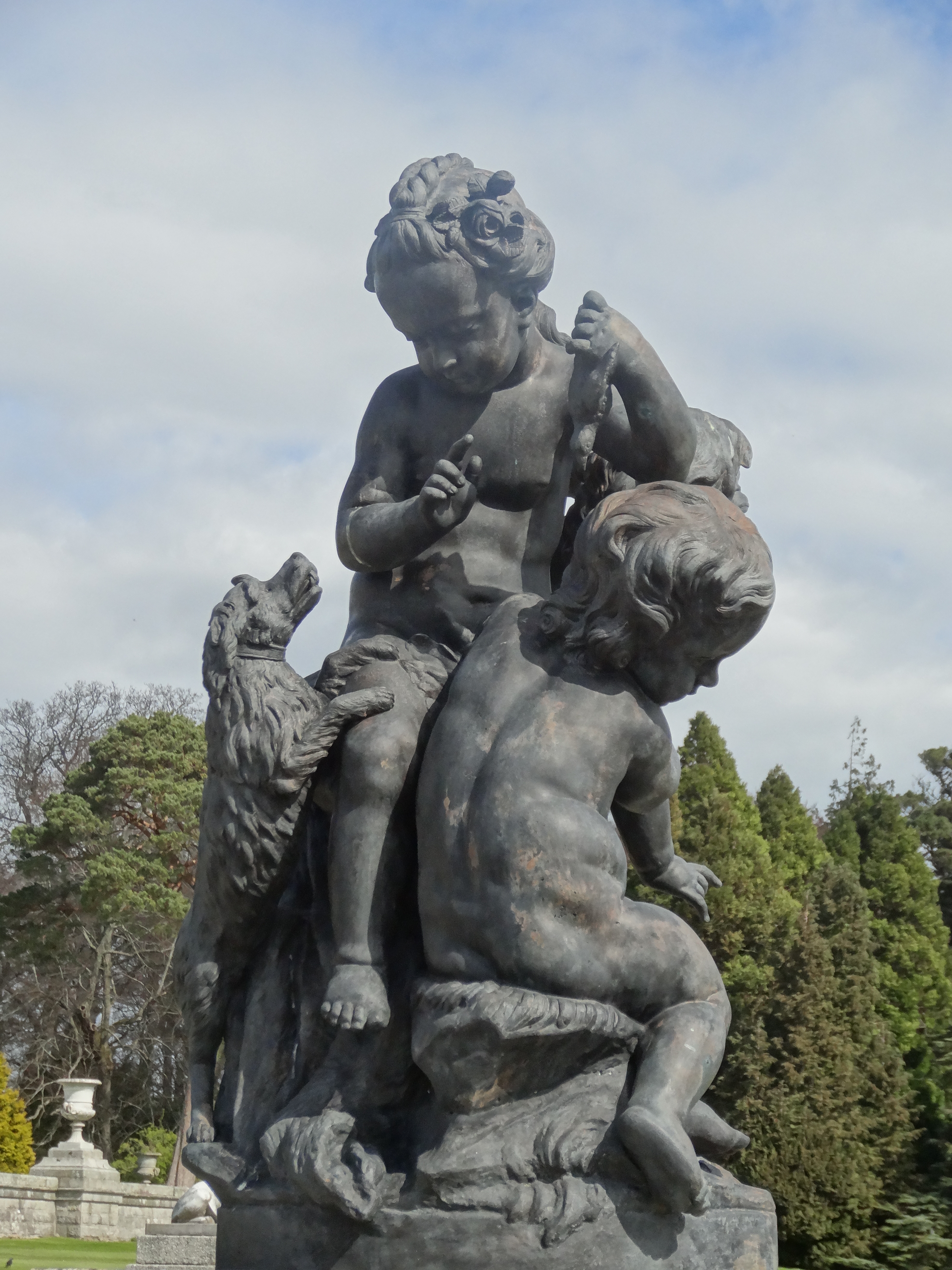 The Powerscourt Estate is nestled in the Wicklow Mountains, an easy drive from Dublin, in an area of breathtaking natural beauty. And it is this contrast, which is particularly interesting at Powerscourt – the formal green symmetrical amphitheatre laid out below,with its terraces, statues and grottoes, wrestling for attention with the natural backdrop of the fields and the Sugarloaf mountain beyond.